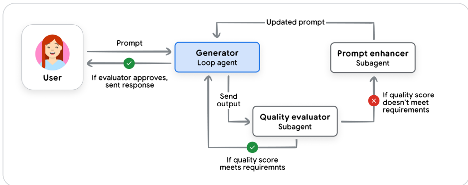 - 观察:通过日志、追踪、指标监控Agent行为。例如,Cloud Trace记录延迟,Cloud Monitoring触发警报。