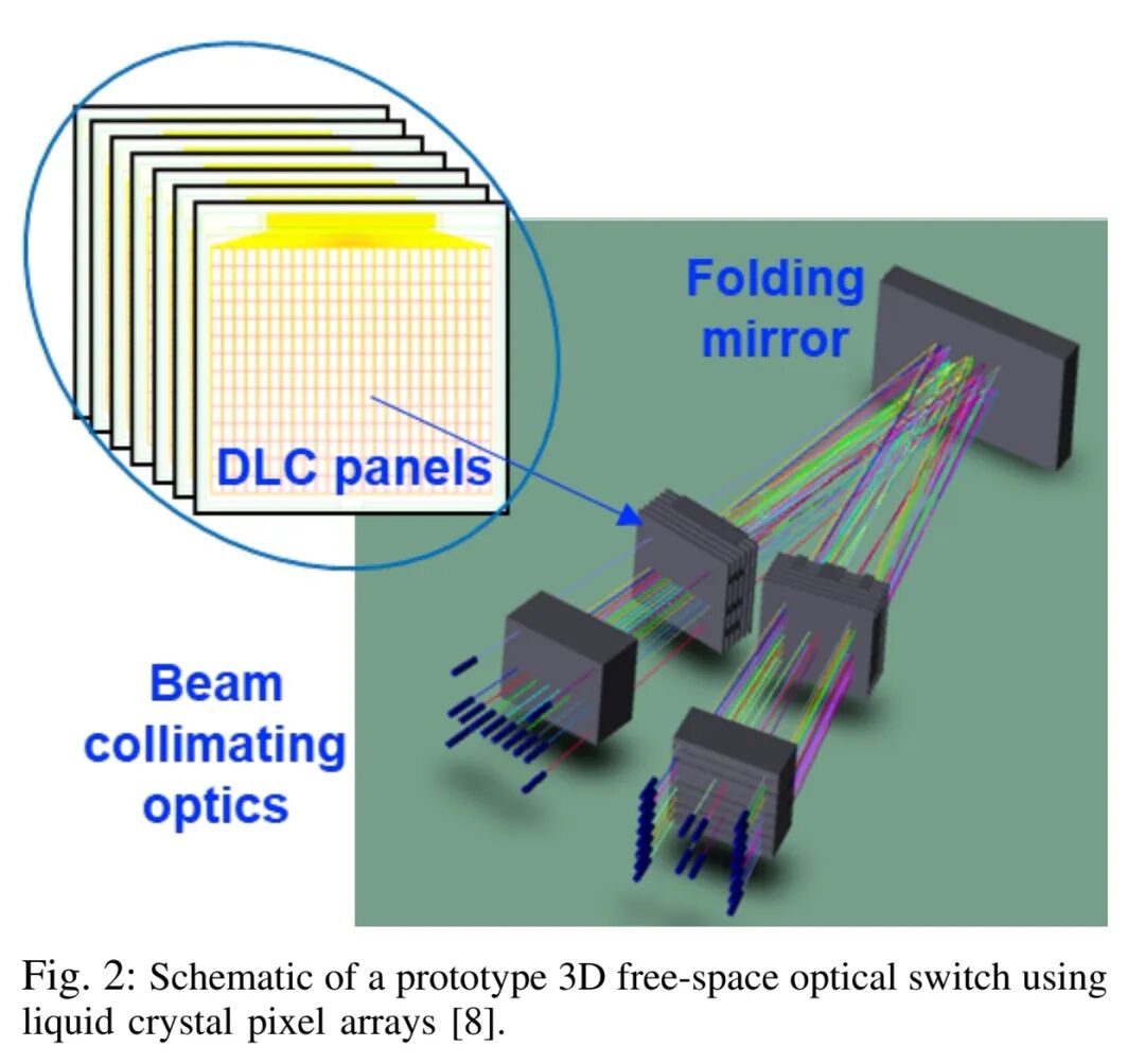 3. 液晶基光开关:Coherent为代表,通过液晶像素阵列数字化控制光束传播方向,采用折叠级联的N个二进制级可构建2^N端口的交换机。其端口数覆盖64-512范围,插入损耗小于3dB,驱动电压仅需10V以下,在低电压场景中具备突出优势。