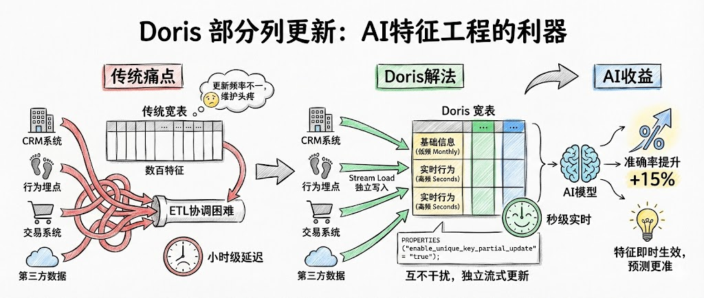 Doris的部分列更新功能,对AI场景更是恰到好处。
