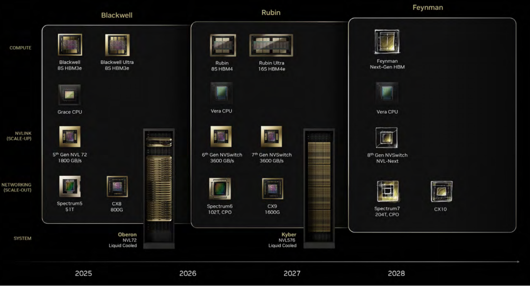 新时代“黄氏定律”继续源远流长和持续发光发热,以每两年一代的形式持续进行颠覆性的架构迭代(Hopper → Blackwell → Rubin)进一步拉开与竞争对手的身位。