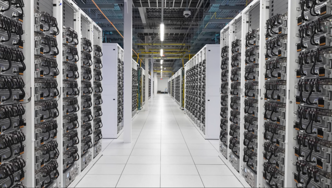 初期10万GPU规模的Colossus集群估计总功耗预计在 150兆瓦至300兆瓦 之间 ,远远超出了当地电力公司(MLGW)的现有电网容量,因此项目初期不得不依赖现场部署的天然气涡轮发电机等临时供电方案 ,同时为了给数据中心各类设备提供稳定的电源,还大规模的特斯拉Megapack 电池储能系统 ,主要作用并非传统的备用电源(UPS)而是作为功率缓冲器。Megapack系统被部署在供电侧和服务器负载之间进行“削峰填谷”对外输出平滑、纯净稳定且可预测的电流。