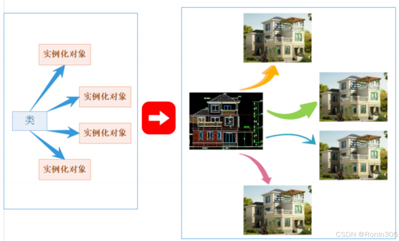}• 用类类型在物理内存中创建对象的过程,称为类实例化出对象。 • 类是对象进行一种抽象描述,是一个模型一样的东西,限定了类有哪些成员变量,这些成员变量只是声明,没有分配空间,用类实例化出对象时,才会分配空间。 • 一个类可以实例化出多个对象,实例化出的对象占用实际的物理空间,存储类成员变量。打个比方:类实例化出对象就像现实中使用建筑设计图建造出房子,类就像是设计图,设计图规划了有多少个房间,房间大小功能等,但是并没有实体的建筑存在,也不能住人,用设计图修建出房子,房子才能住人。同样类就像设计图一样,不能存储数据,实例化出的对象分配物理内存存储数据。