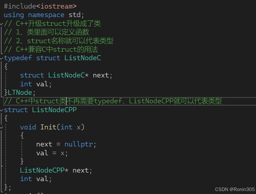 关于struct类,C++同样兼容C中struct的用法,如下图: