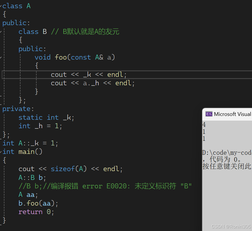 如下图所示,B类是A类的内部类,但是受A类的类域限制。