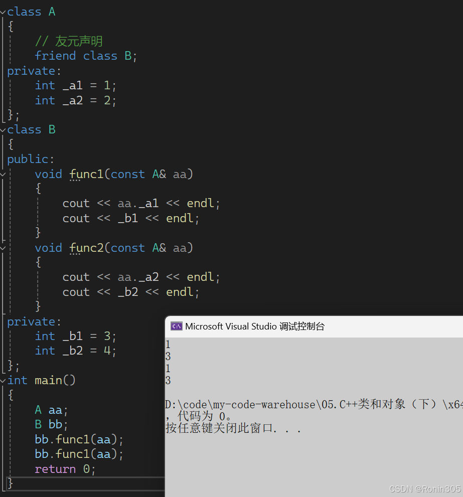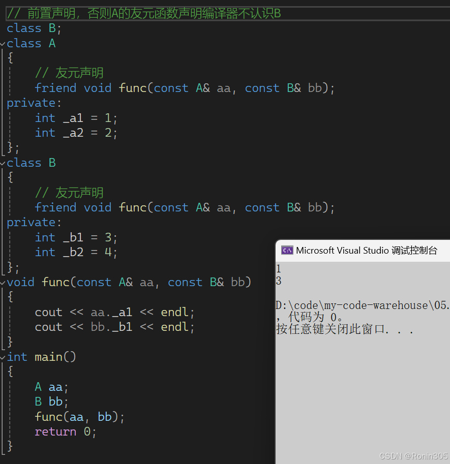 类外的函数想要访问类里面的私有成员,就可以使用友元函数,如下图。