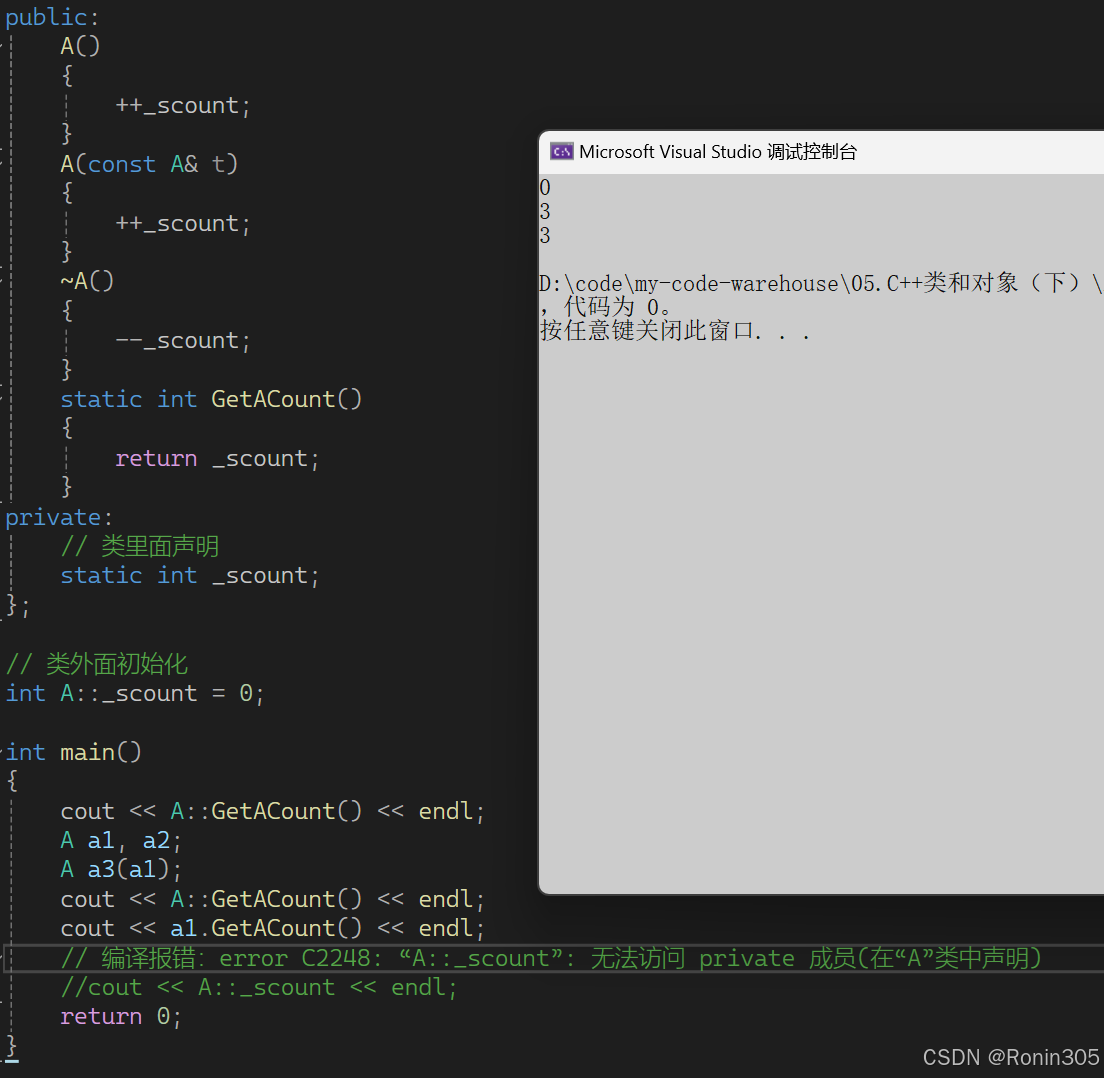 如上图,静态成员也是类的成员,受public、protected、private 访问限定符的限制。