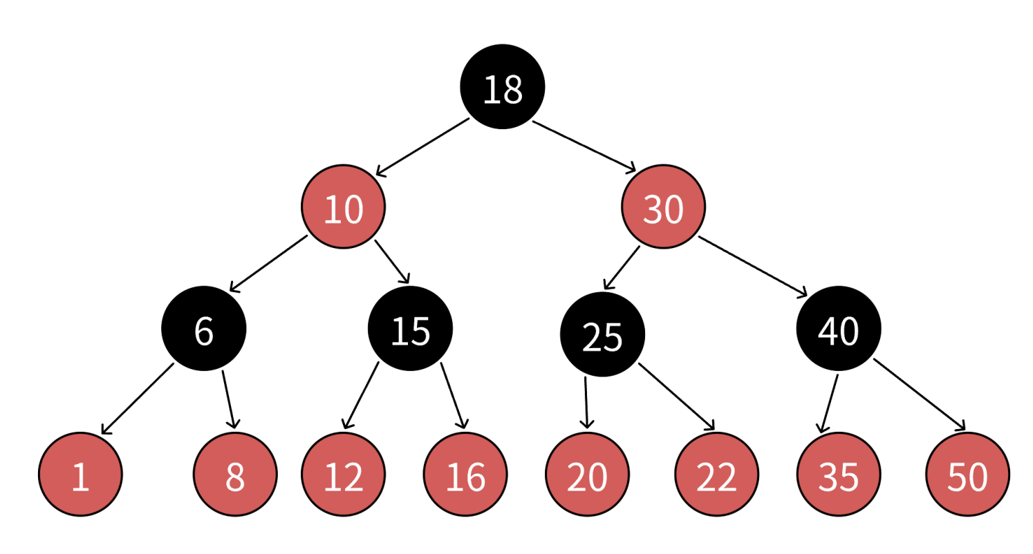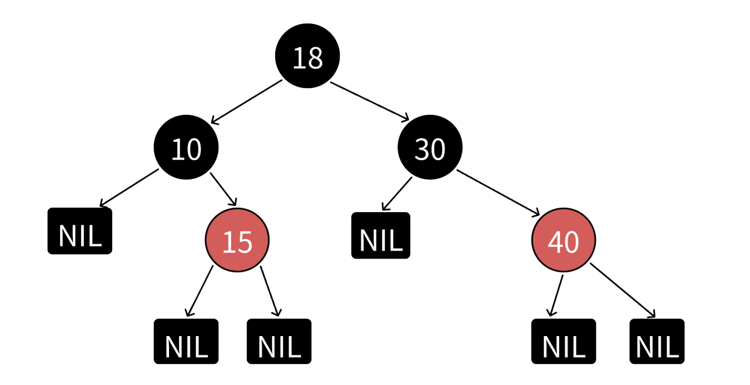 注:《算法导论》等书籍补充了一条规则:所有叶节点(NIL)必须是黑色。这里的叶节点并非传统意义上的叶节点,而是指空节点(也被称为外部节点)。NIL节点的引入是为了准确标识所有路径,但在实际实现细节中《算法导论》也忽略了NIL节点,了解这个概念即可。