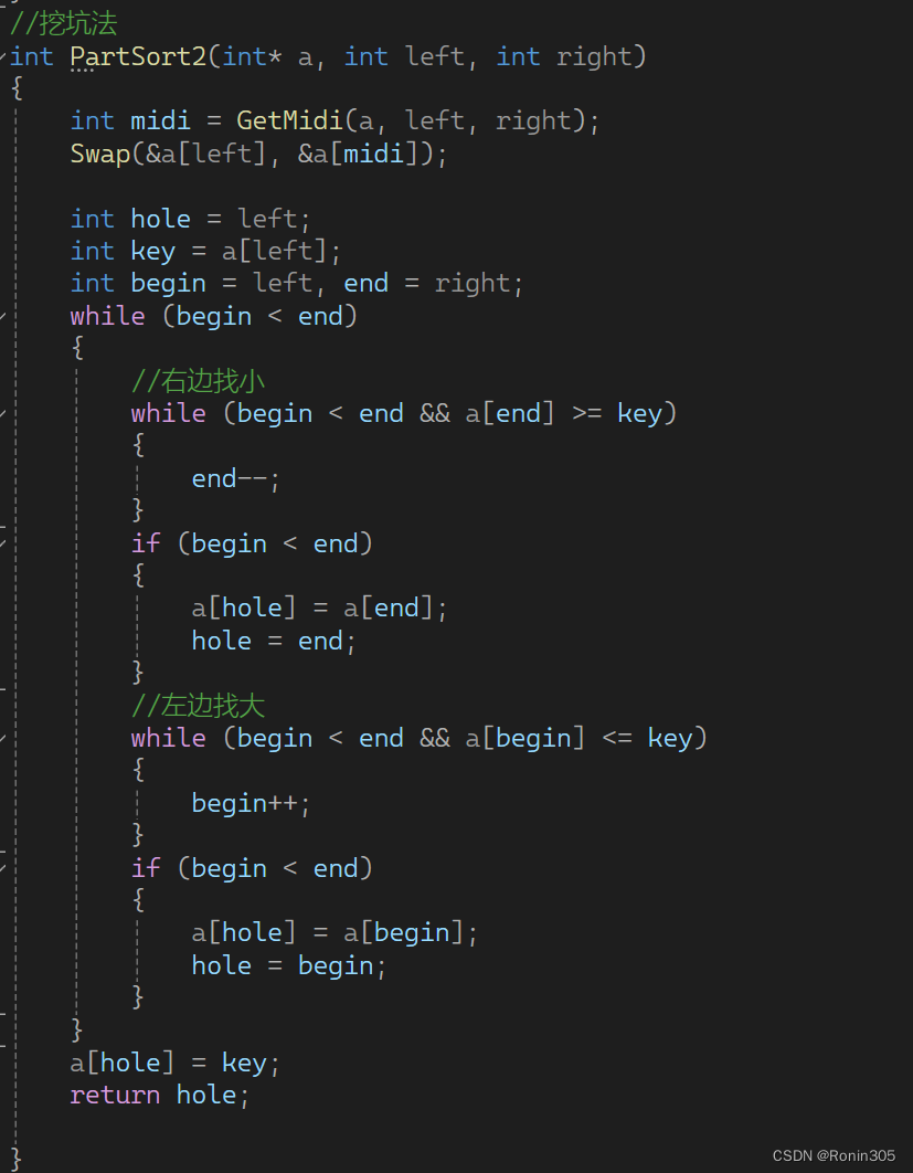 挖坑法和前后指针法实现单趟排序如下(难度不大这里就不细讲了):