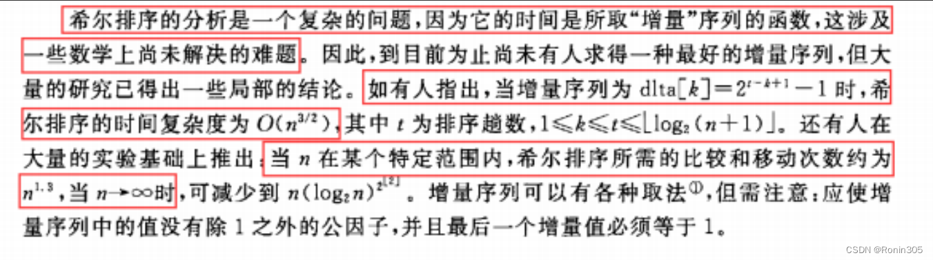 3. 希尔排序的时间复杂度不好计算,因为 gap的取值方法很多,导致很难去计算,因此在好些书中给出的希尔排序的时间复杂度都不固定: