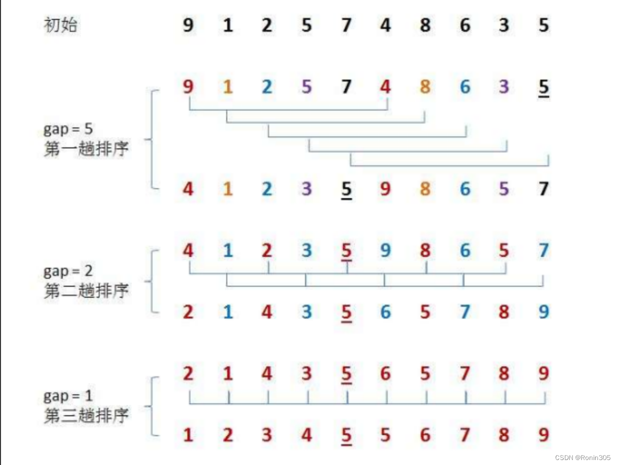 上面只是一组数据,我们把总的数据分成了gap组,现在要对每组数据分别插入排序