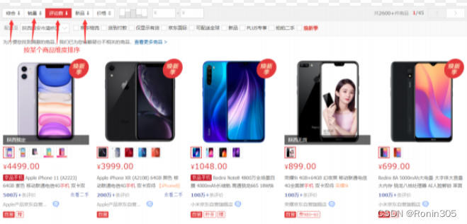 比如我们要购买手机可以按价格排序,按销量排序等。