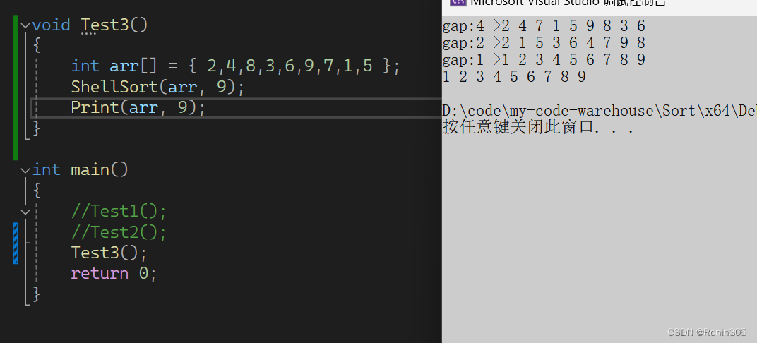 2. 当 gap > 1 时都是预排序,目的是让数组更接近于有序。当 gap == 1 时,数组已经接近有序的了,这样就会很快。这样整体而言,可以达到优化的效果。我们实现后可以进行性能测试的对比。