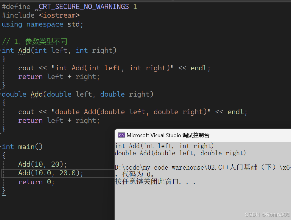 C++支持在同一作用域中出现同名函数,但是要求这些同名函数的形参不同,可以是参数个数不同或者类型不同。这样C++函数调用就表现出了多态行为,使用更灵活。C语言是不支持同一作用域中出现同名函数的。