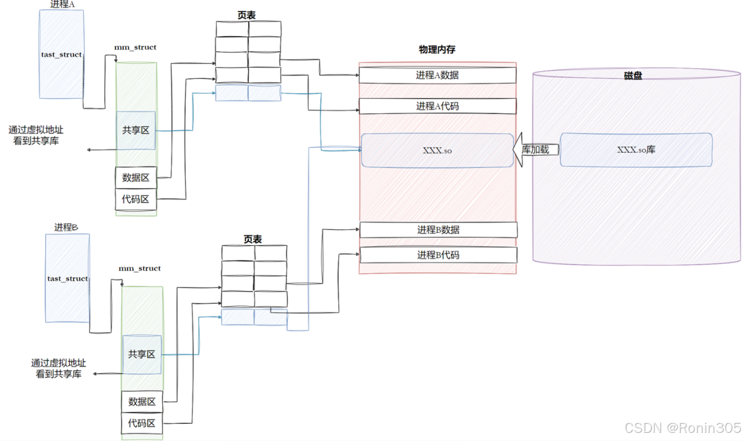 1. 库加载 | 动态链接器(ld.so)映射库到共享区 | 内核mmap |