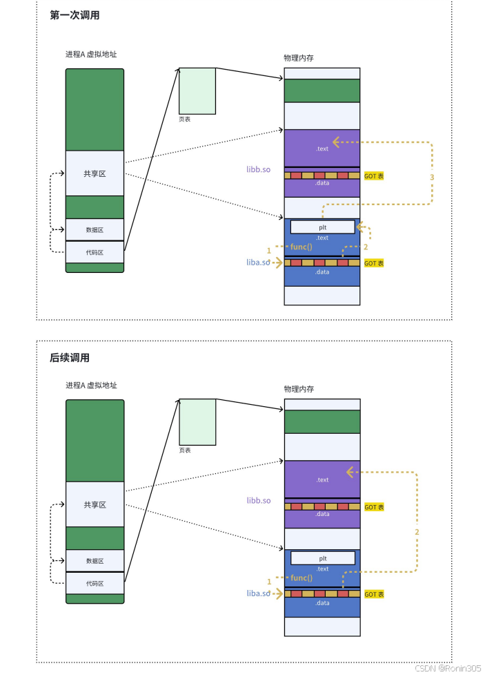 GOT 表(.data) | 进程私有 | 1. 不同进程库加载基址不同(ASLR) 2. 需存储进程专属的绝对地址 |