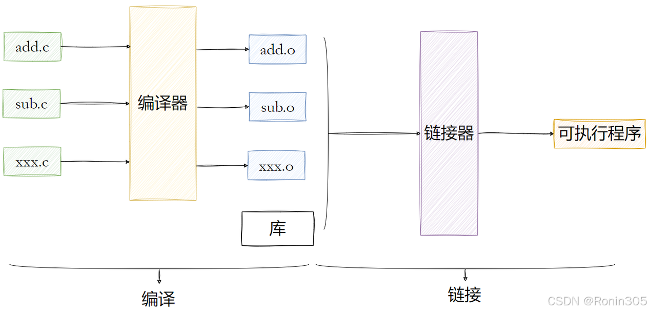 .o 文件)链接在一起,解析各个文件之间的外部引用,生成最终的可执行文件。如果直接对 .c 文件进行链接,链接器需要先将 .c 文件编译为目标代码,然后再进行链接,这增加了链接器的复杂性和工作量。而将编译和链接分开,链接器可以直接处理 .o 文件,更高效地完成链接任务。