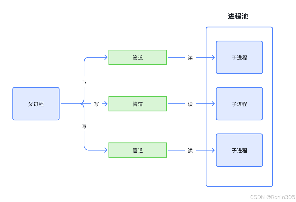 下面我们会基于父进程写子进程读的匿名管道来实现进程池