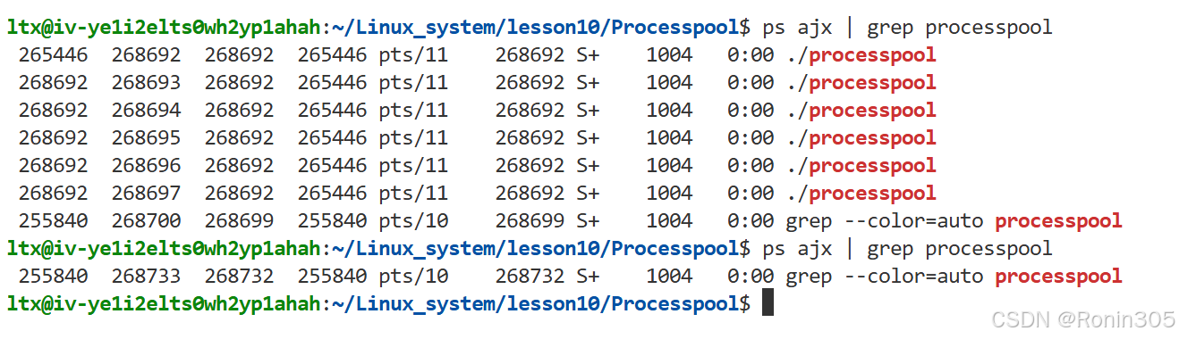 ltx@iv-ye1i2elts0wh2yp1ahah:~/Linux_system/lesson10/Processpool$ make