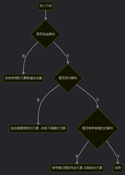 解构元组是将元组中的各个元素提取出来并赋值给变量的过程。以下是几种常见的解构方式: