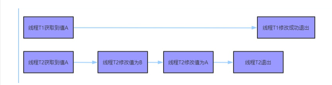 到这一步,t1线程无法区分当前这个变量始终是A,还是经历了一个变化过程。