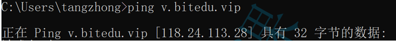 2. 在cmd中输入 ping v.bitedu.vip ,即可看到域名解析的结果