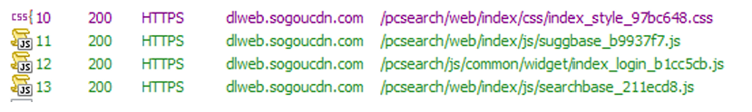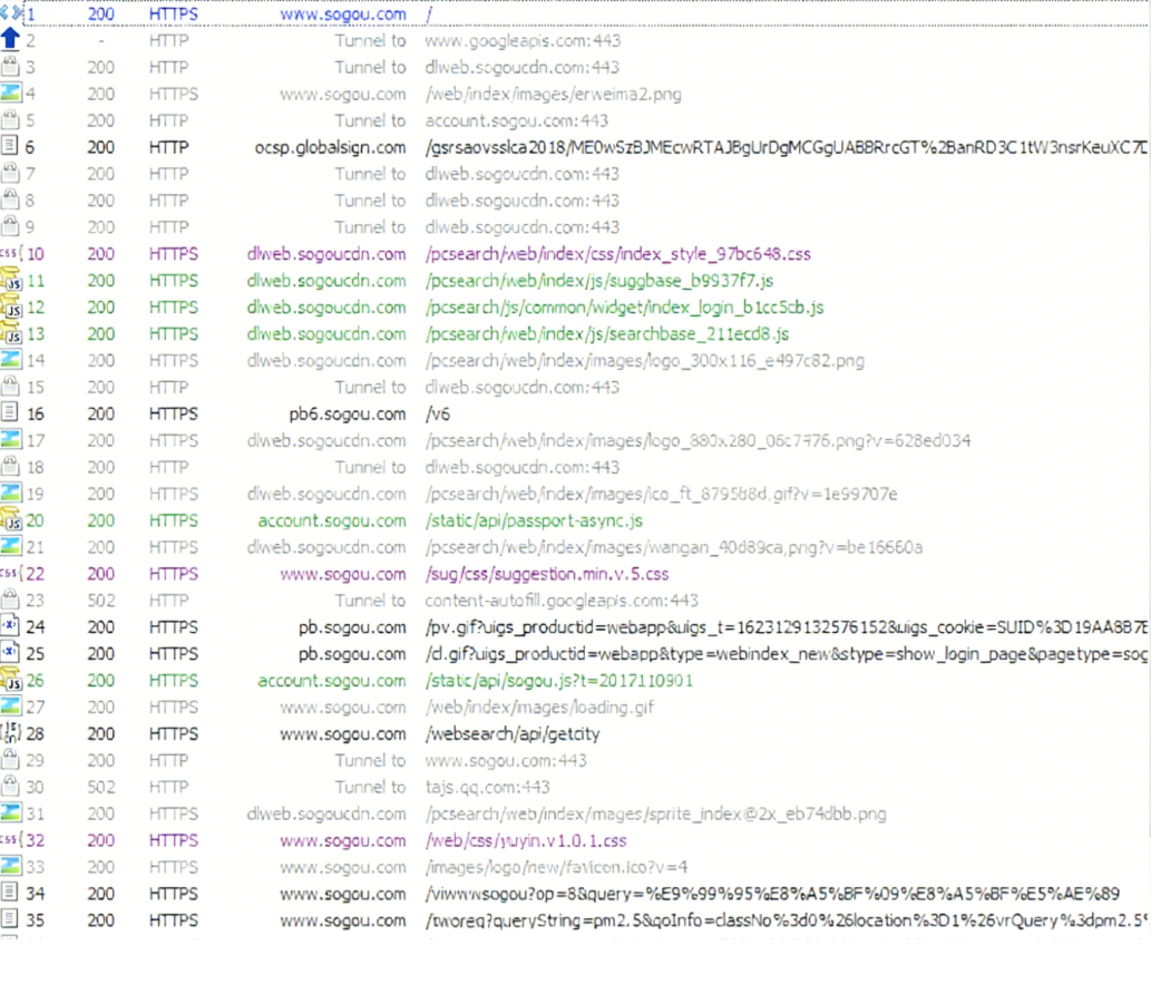 是通过浏览器地址栏发送的GET请求. 下面的和sogou域名相关的请求,有些是通过html中的link/script/img标签产生的,例如