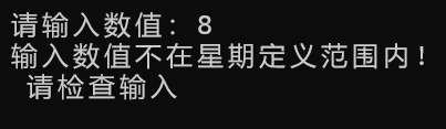 printf("输入数值不在星期定义范围内!\n 请检查输入\n");
