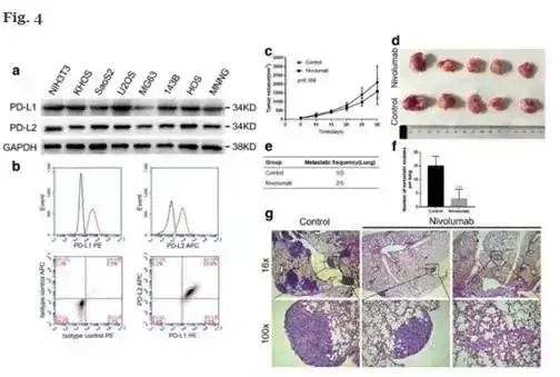 参考文献:PD-1 axis expression in musculoskeletal tumors and antitumor effect of nivolumab in osteosarcoma model of humanized mouse