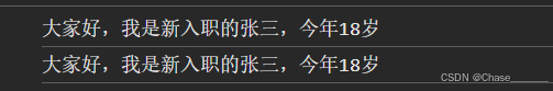 let info1 = `大家好,我是新入职的`+name+`,今年`+age+`岁`;