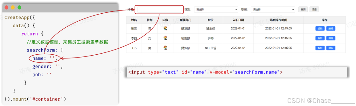 </td>v-model="变量名"createApp({