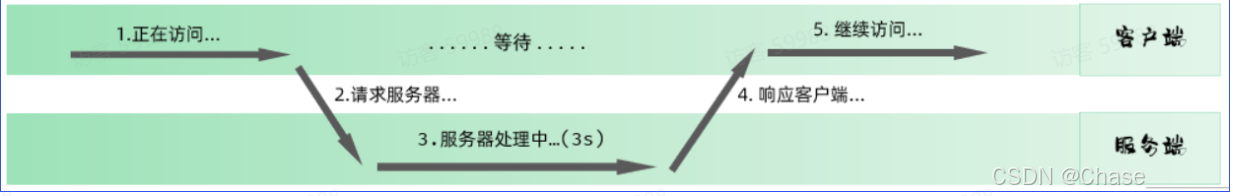 浏览器页面在发送请求给服务器,在服务器处理请求的过程中,浏览器页面不能做其他的操作。只能等到服务器响应结束后才能,浏览器页面才能继续做其他的操 作