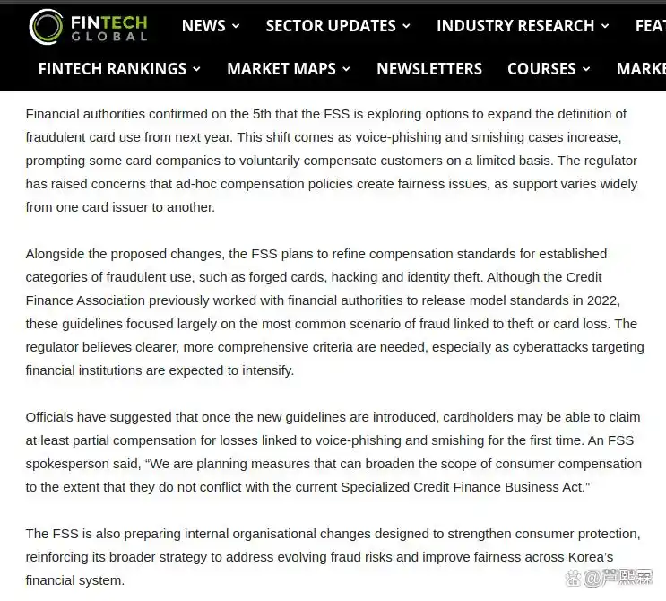 当前韩国《电子金融交易法》及相关监管指引虽规定了金融机构在异常交易监测中的基本义务,但对用户“自愿行为”所致损失是否应纳入赔付范围缺乏明确标准。实践中,银行常以“客户自主操作”为由拒绝全额赔付,引发大量消费者投诉与社会争议。在此背景下,韩国金融委员会(Financial Services Commission, FSC)于2025年提出系统性改革方案,拟通过修订赔付规则、强化技术风控能力、优化用户交互设计等多维措施,重构金融消费者保护框架。本文旨在深入剖析该改革方案的技术逻辑、制度安排与潜在挑战,结合实证数据与算法模型,探讨其在平衡消费者权益保障与防范道德风险之间的可行性路径,并为其他国家提供可借鉴的治理范式。