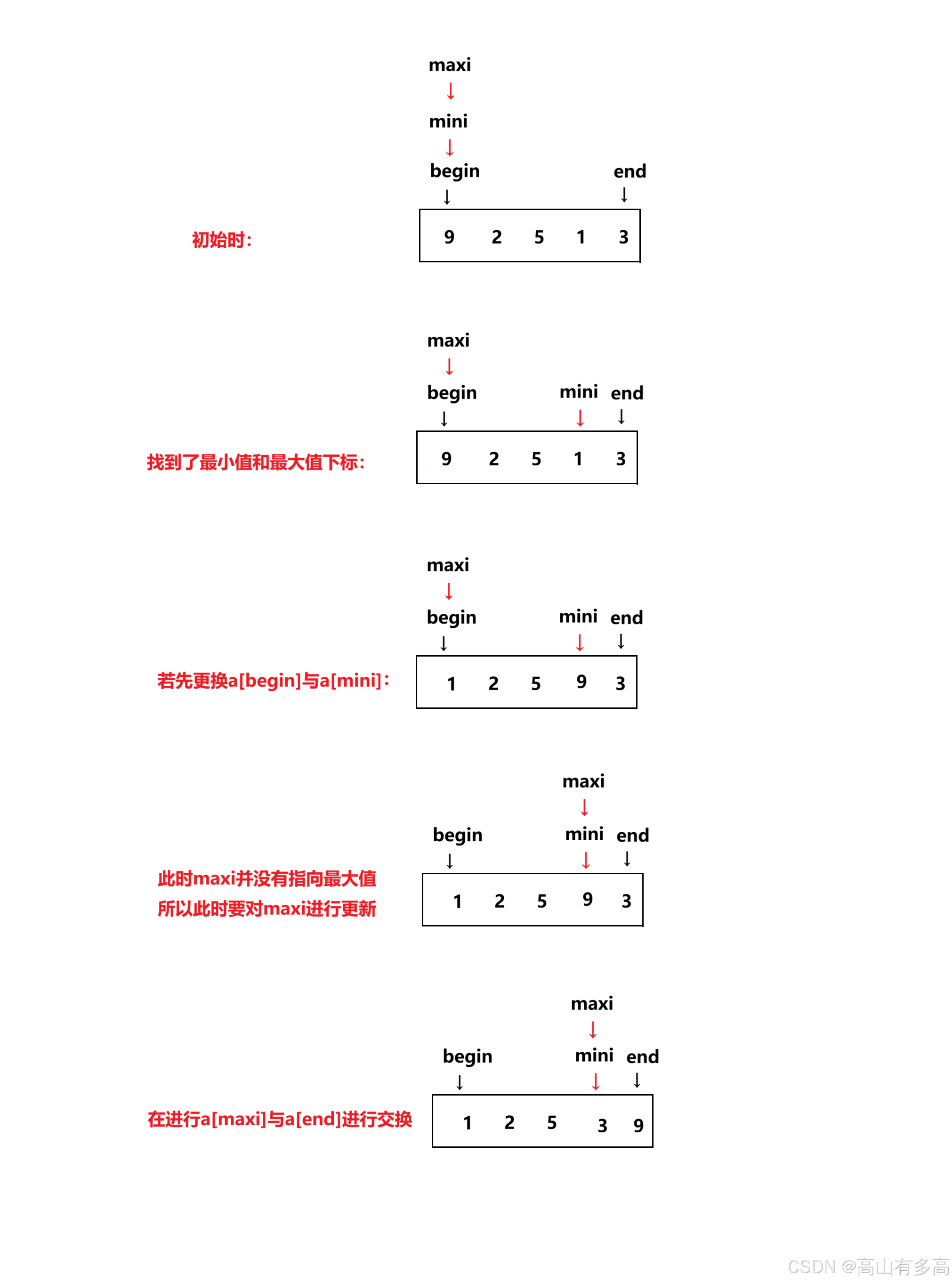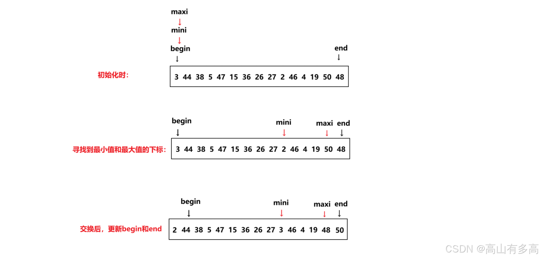 //将a[begin]与a[mini]交换后,此时最大值的元素被换在了mini的位置