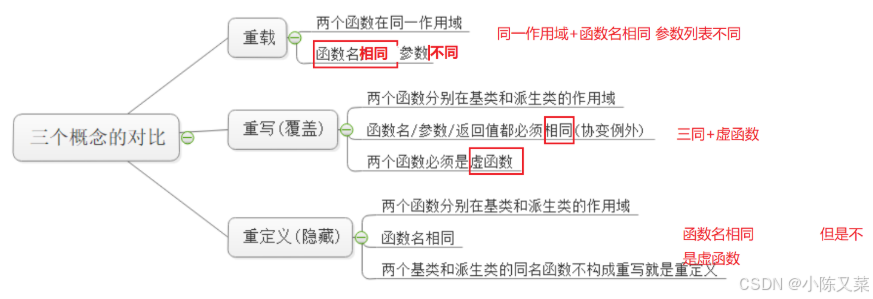 }虚函数的重写也叫覆盖,派生类(子类)有一个和基类完全相同的虚函数(也就是派生类的函数名、返回参数列表都完全相同),称此为子类的虚函数重写了基类的虚函数: