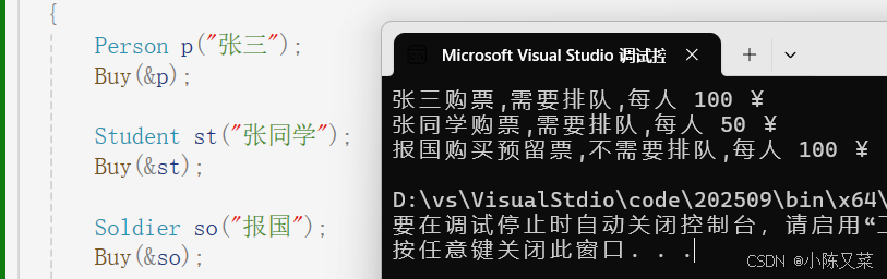 3. 军人 :购买预留票,无需排队,每人100¥上面就是一个典型的多态案例,不同的身份购买到了不同的车票。我们尝试使用代码实现。