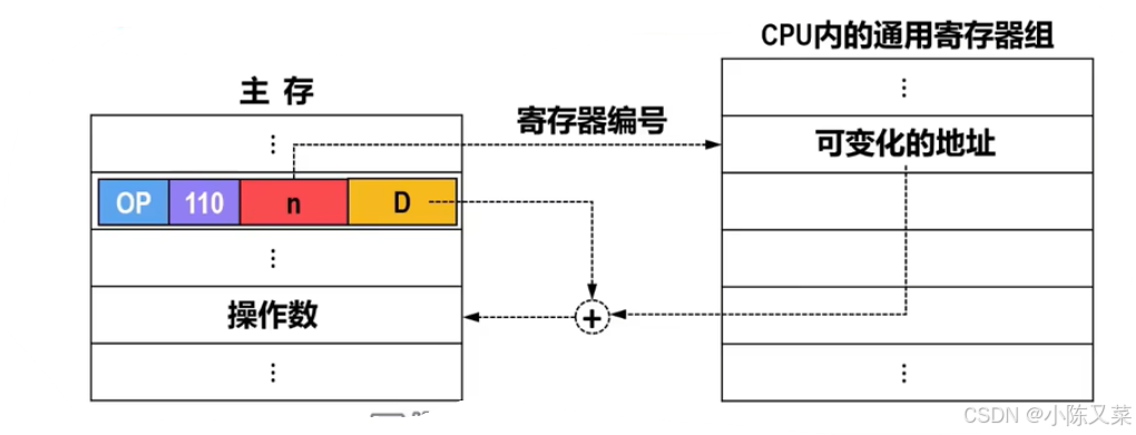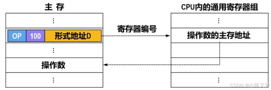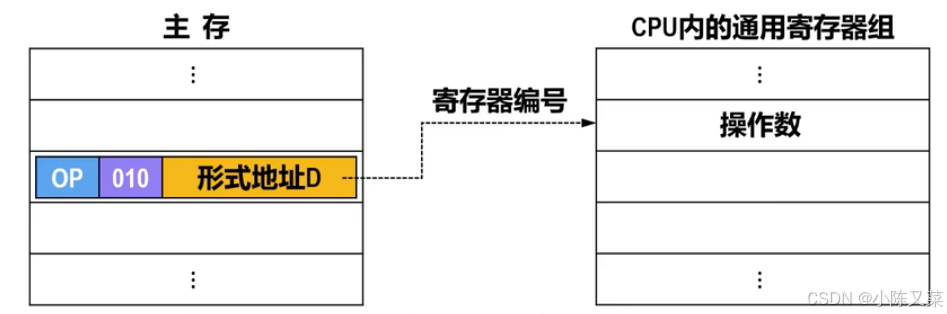 在寄存器寻址的方式下,操作数和指令是分开存放的,操作数存放在CPU中的某个通用寄存器中,指令存放在主存: