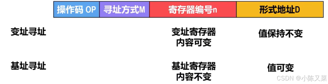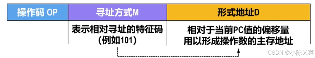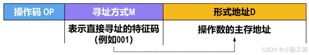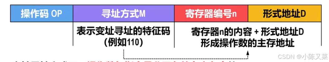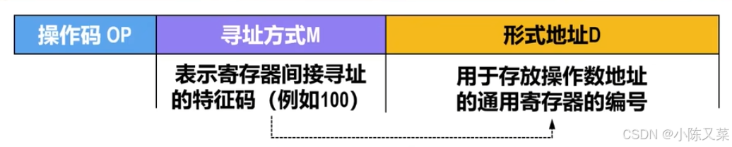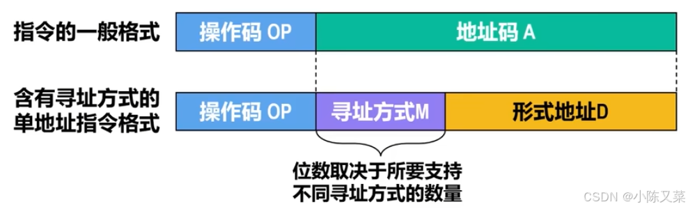 我们知道不同指令可能采取不同的寻址方式来获取操作数,所以我们这里将指令格式中的地址码拆分成两部分: