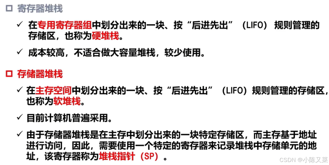 零地址指令只包含操作码字段,而没有地址码字段,可以分为两类: