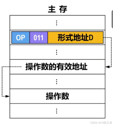 间接寻址方式下,操作数与指令分开存放在主存中:
