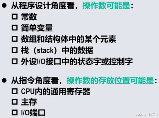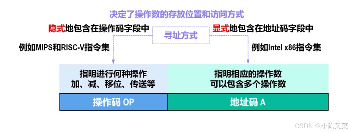 而如何获取操作数由寻址方式决定,简单说寻址方式决定了操作数的存放位置和访问方式。值得注意的是,寻址方式可以显示地包含在地址码字段中,也可以隐式地包含在操作码字段中。