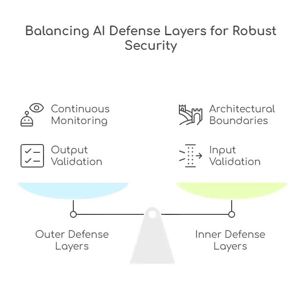 架构边界是最有效的控制手段。就算攻击者成功注入提示,限制住AI实际能做什么,就能防止严重损害。这是最应该先投钱的地方。