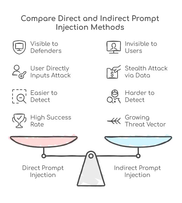 ⚠️ 特别注意: 间接提示注入特别危险,因为用户根本看不到那些恶意指令。AI系统则自动检索并处理它们,是个很难察觉的隐蔽攻击向量。