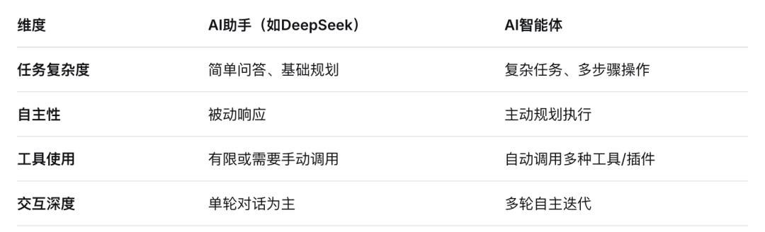 那么以DeepSeek为例,来对比下DeepSeek和AI智能体的区别。