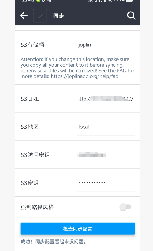 在windows上部署joplin之后 点击 工具->选项,点击菜单中的同步,同步目标选择s3,