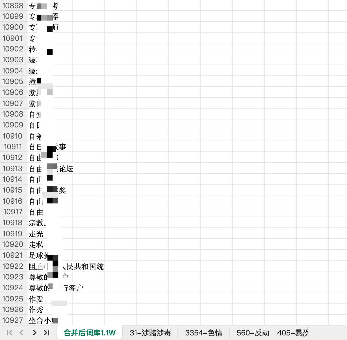 高风险类别直接涉及国家安全、社会稳定及公民人身安全,关键词应严格、全面,每类建议包含200–300个关键词,确保无遗漏。