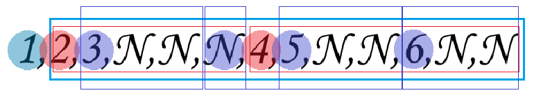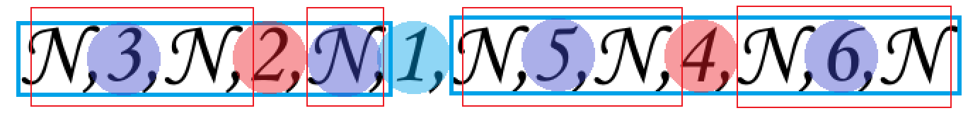 在中序序列 N,3,N,2,N,1,N,5,N,4,N,6,N 中,根节点 1 出现的位置将序列分为两部分:
