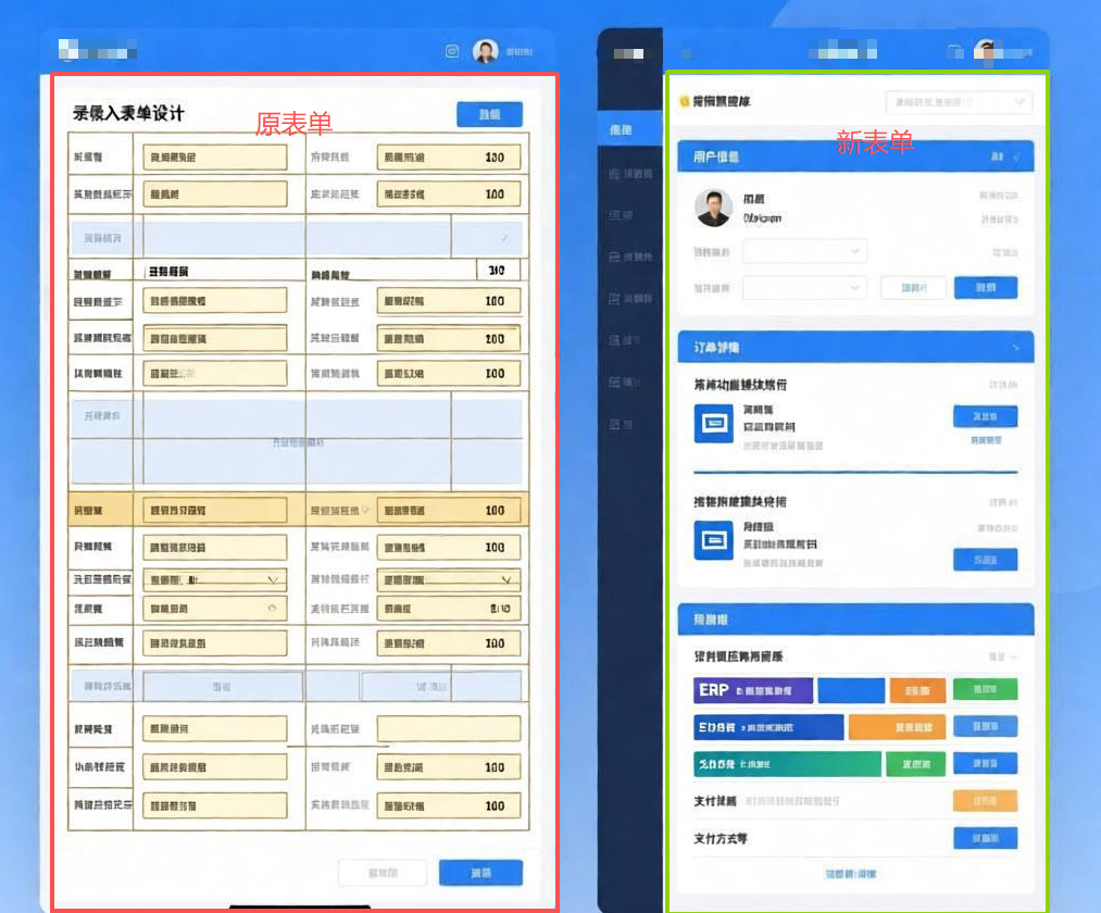 但右边,程序员配合Ooder全栈框架+企业级AI搞的自动布局重构,直接惊艳!自动分组、精准适配业务流程、核心字段前置,还完美兼容现有系统——这才是企业级AI的正确打开方式:不是替代程序员,而是在优秀全栈框架支撑下,帮程序员做出专业、精致、贴合业务的高级工具!