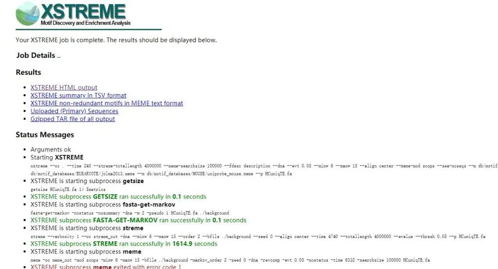 XSTREME HTML output:这是完整的可视化报告,包含富集分析结果、序列标志图(Sequence Logo)、统计表格及基因-基序关联网络图,适合直接在浏览器中查看和解读。