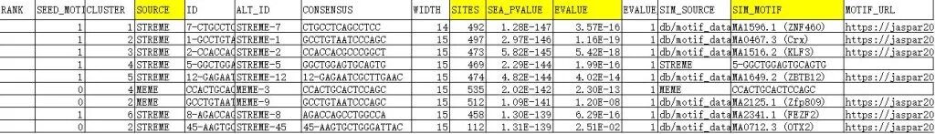 文件3-4:streme_tomtom_out、meme_tomtom_out(Tomtom工具比对结果)核心文件