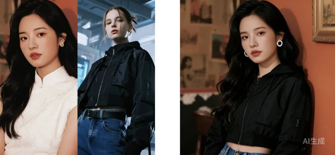 提示词:将图1的服装换为图2的服装